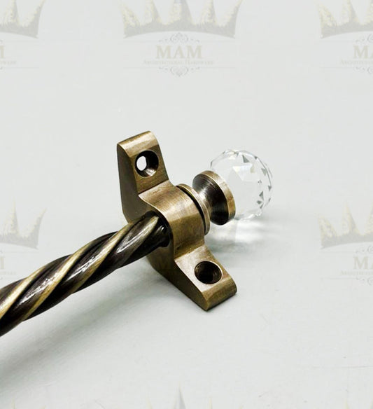 Antique Brass Stair Rods - 3/8" x 28.5" - Candy Twisted - Crystal Ball Finial