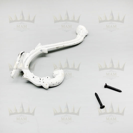 Antique White Double Coat Hook Hanger Iron
