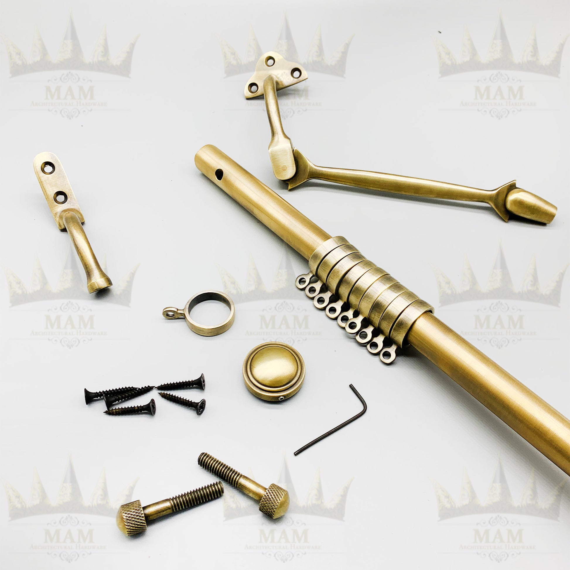 - Made from Solid Metal, Our Portiere Rods are always popular, This is the type that raises as the door is opened, the curtain therefore should be free from dragging on the floor, Complete with brass brackets, solid brass rings and two brass end stops.