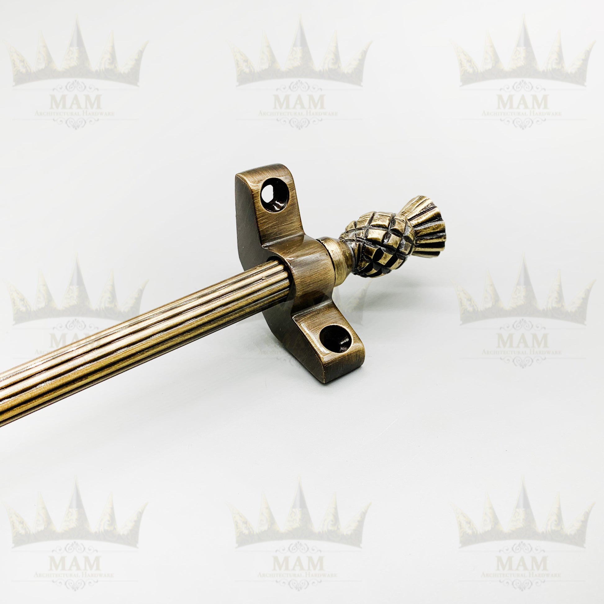 Antique Brass Stair Rods - 3/8" x 28.5" - Norfolk Reed - Thistle Finial