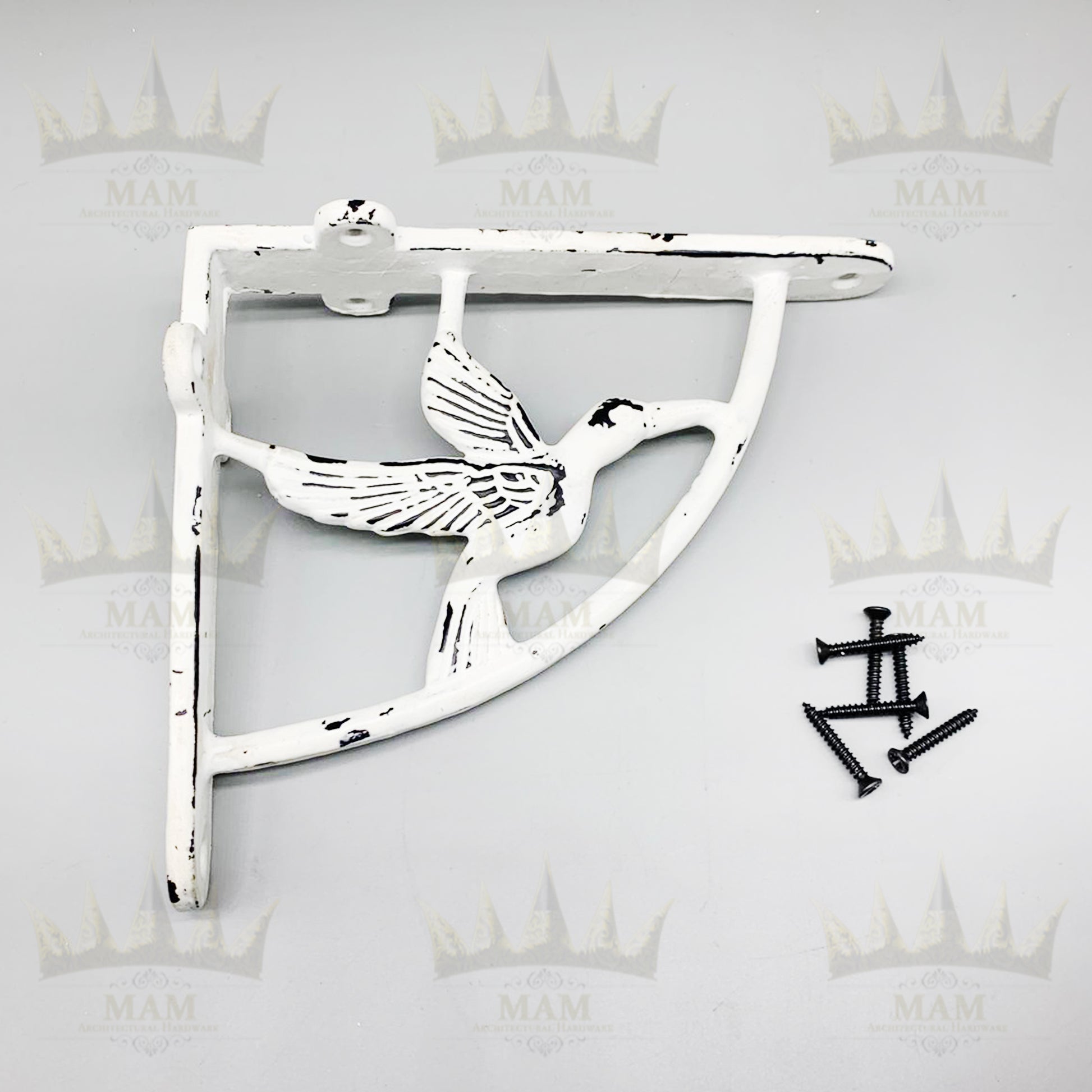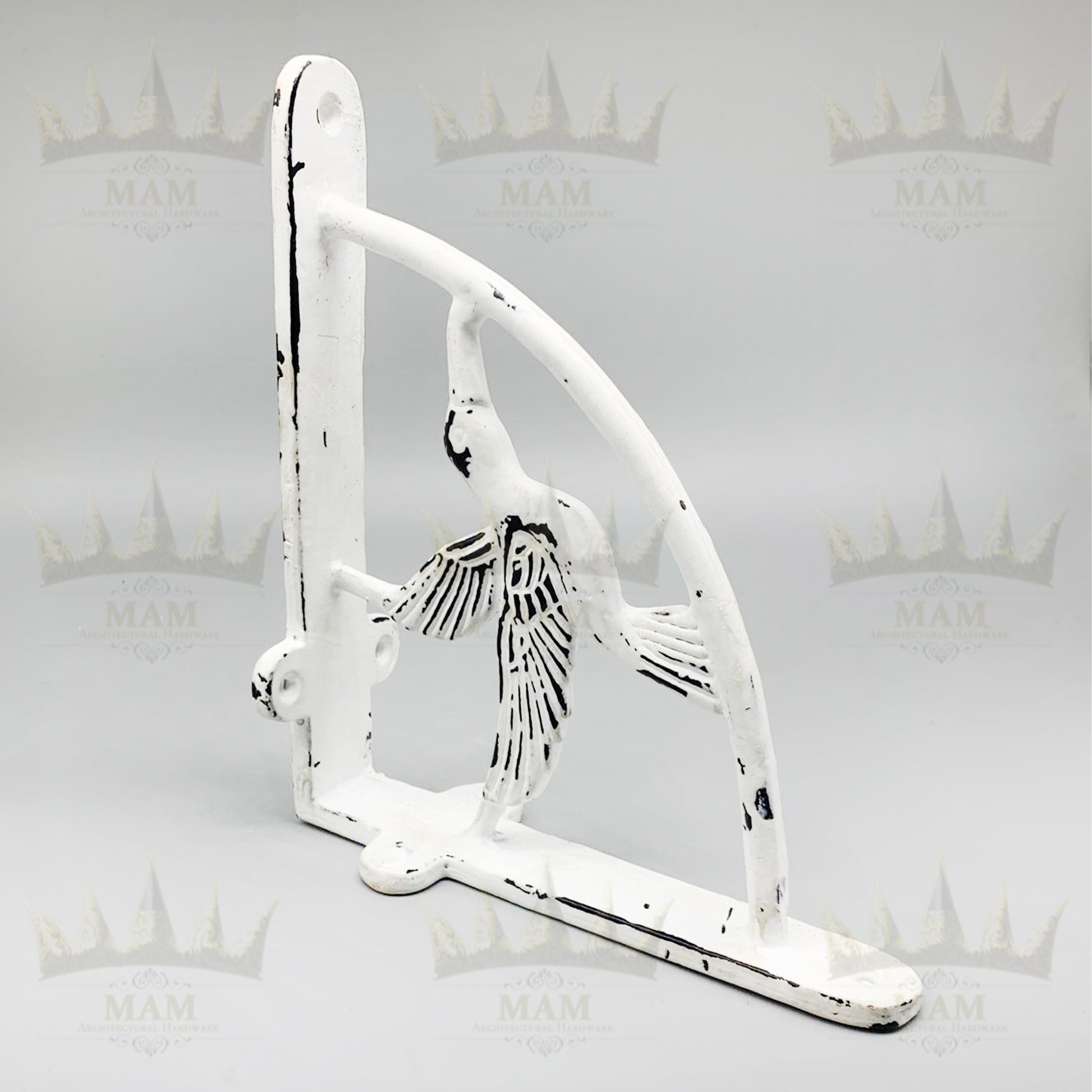 PAIR of Cast Iron VICTORIAN BIRD Shelf Bracket 7" x 6" - White Antique Finish