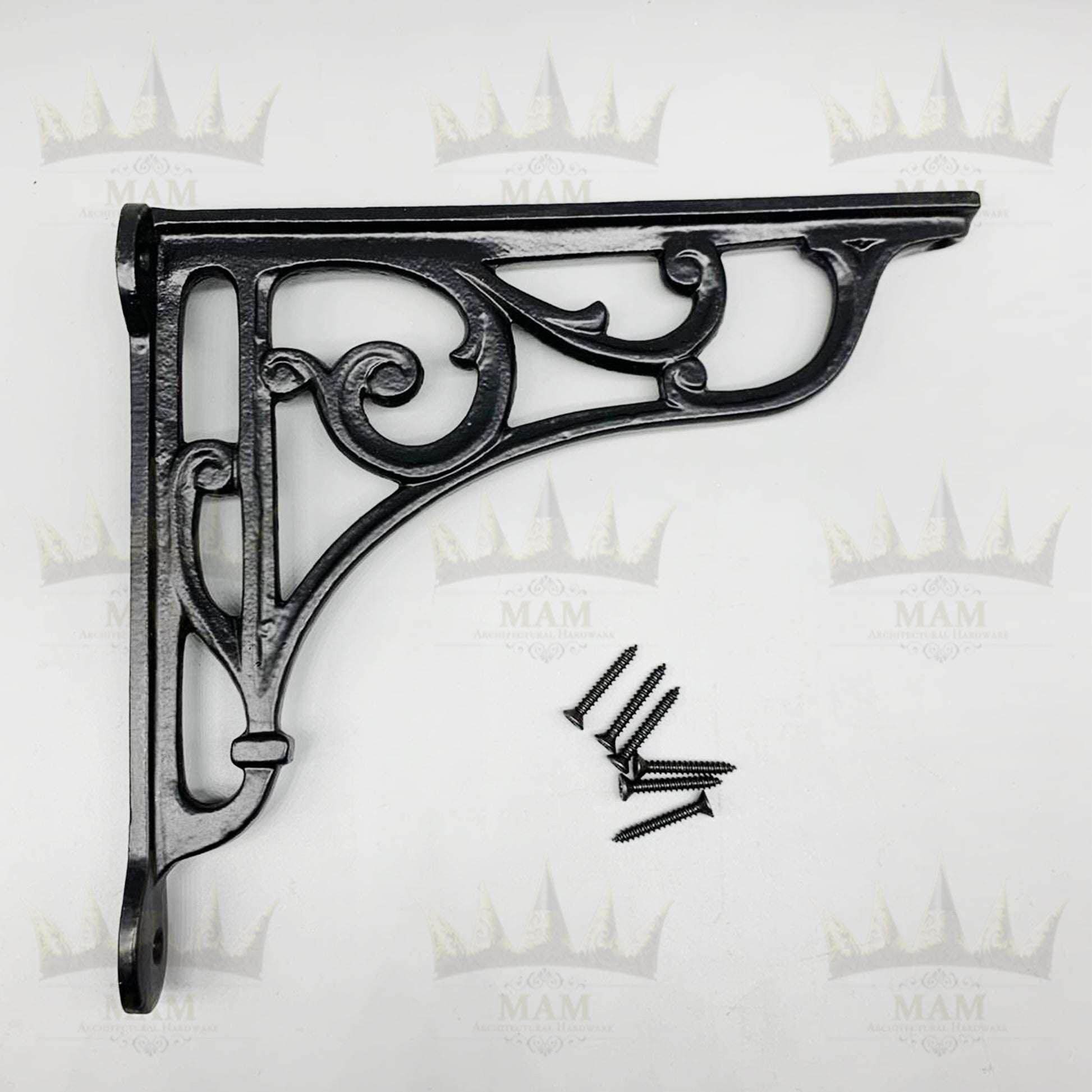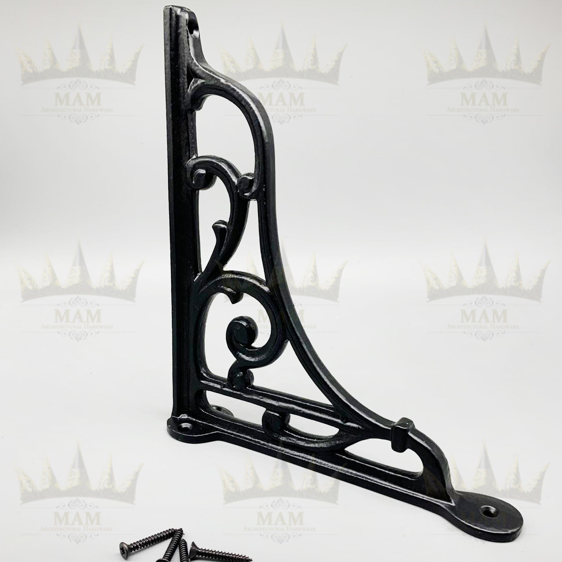 Cast Iron VICTORIAN Shelf Bracket 6" x 6" - Black Finish