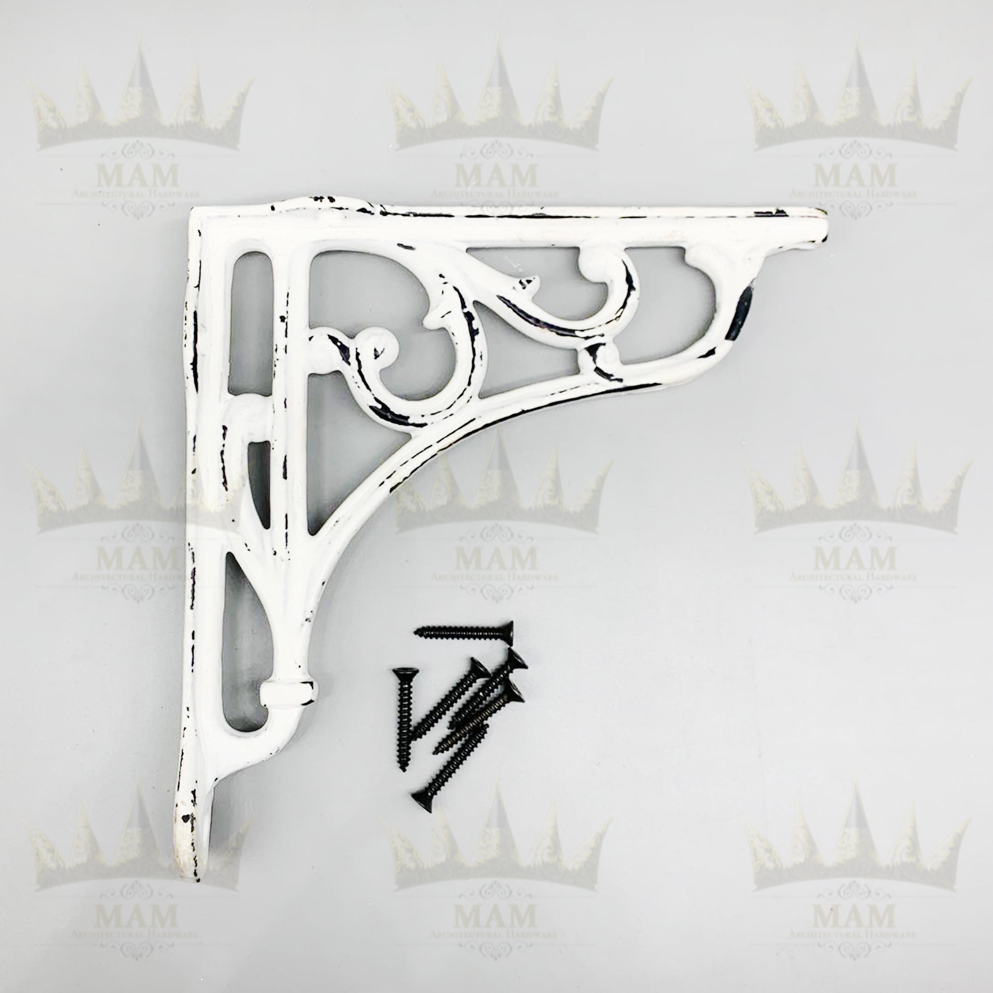 Cast Iron VICTORIAN Shelf Bracket 6" x 6" - White Antique Finish