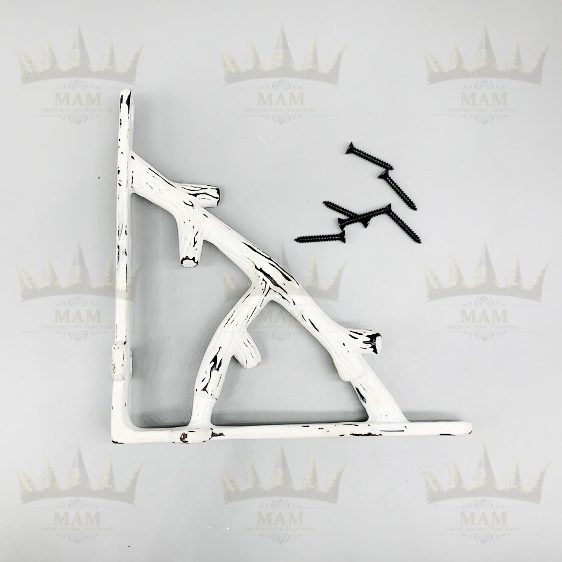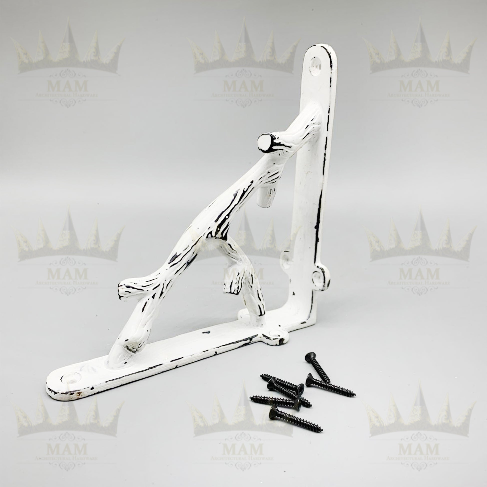 Cast Iron VICTORIAN TREE Shelf Bracket 6" x 6" - White Antique Finish