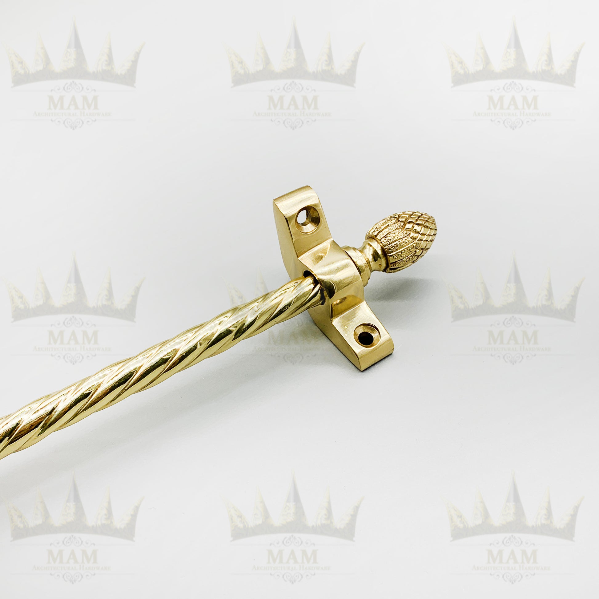 Polished Brass Stair Rods - 3/8" x 28.5" - Candy Twist - Pine Finial